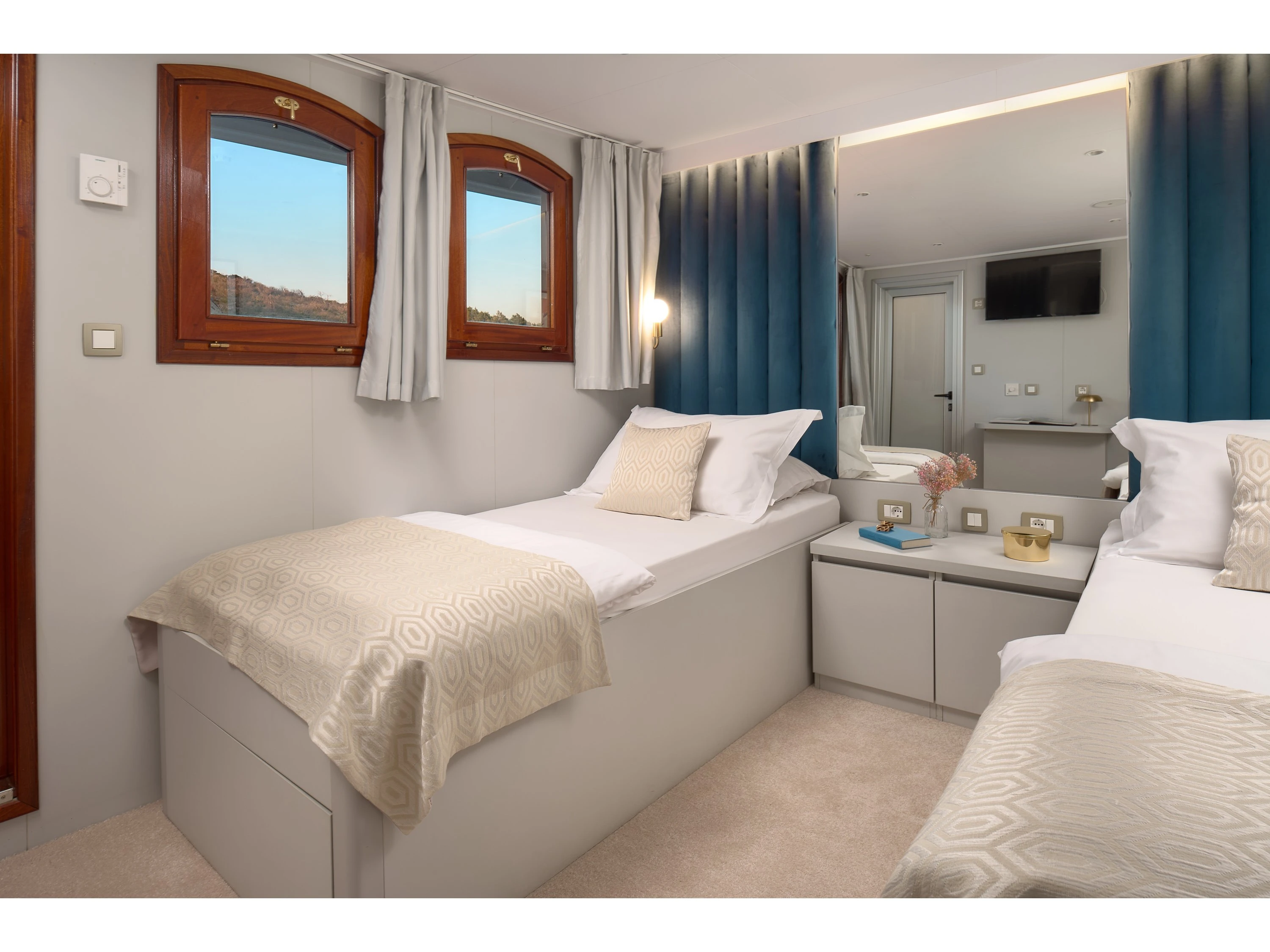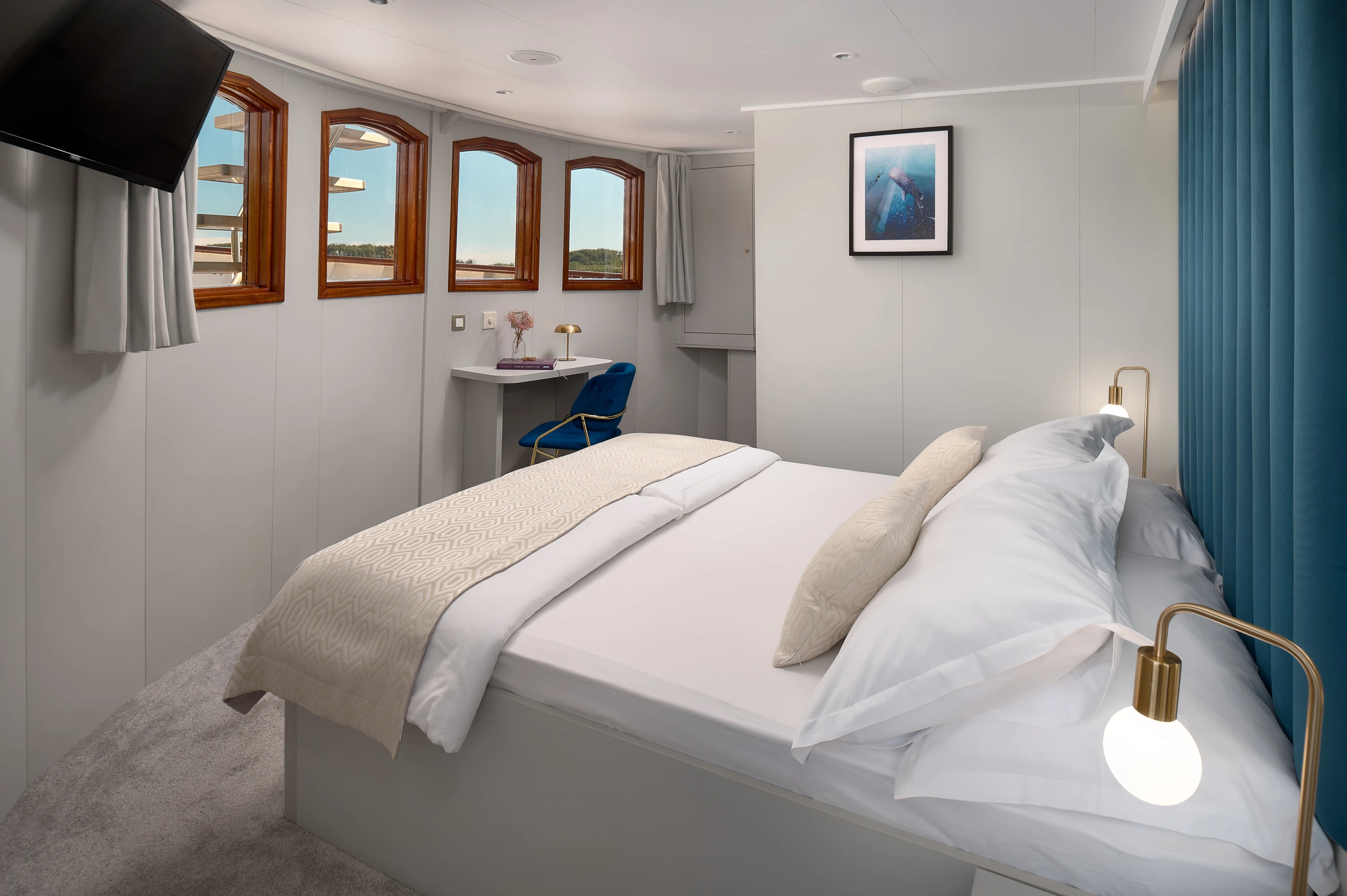 - SHIPBOARD ACCOMMODATION: maximum number of 36 guests sleeping in 18 cabins