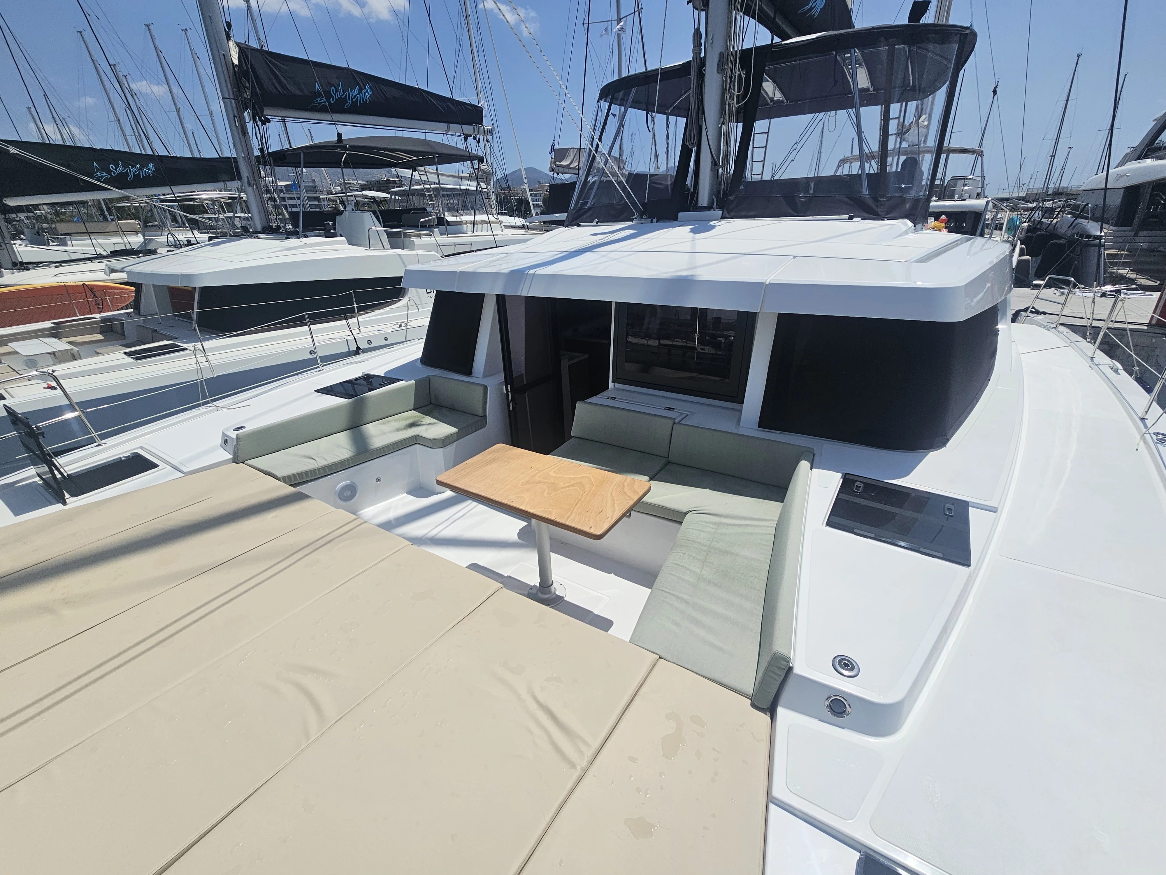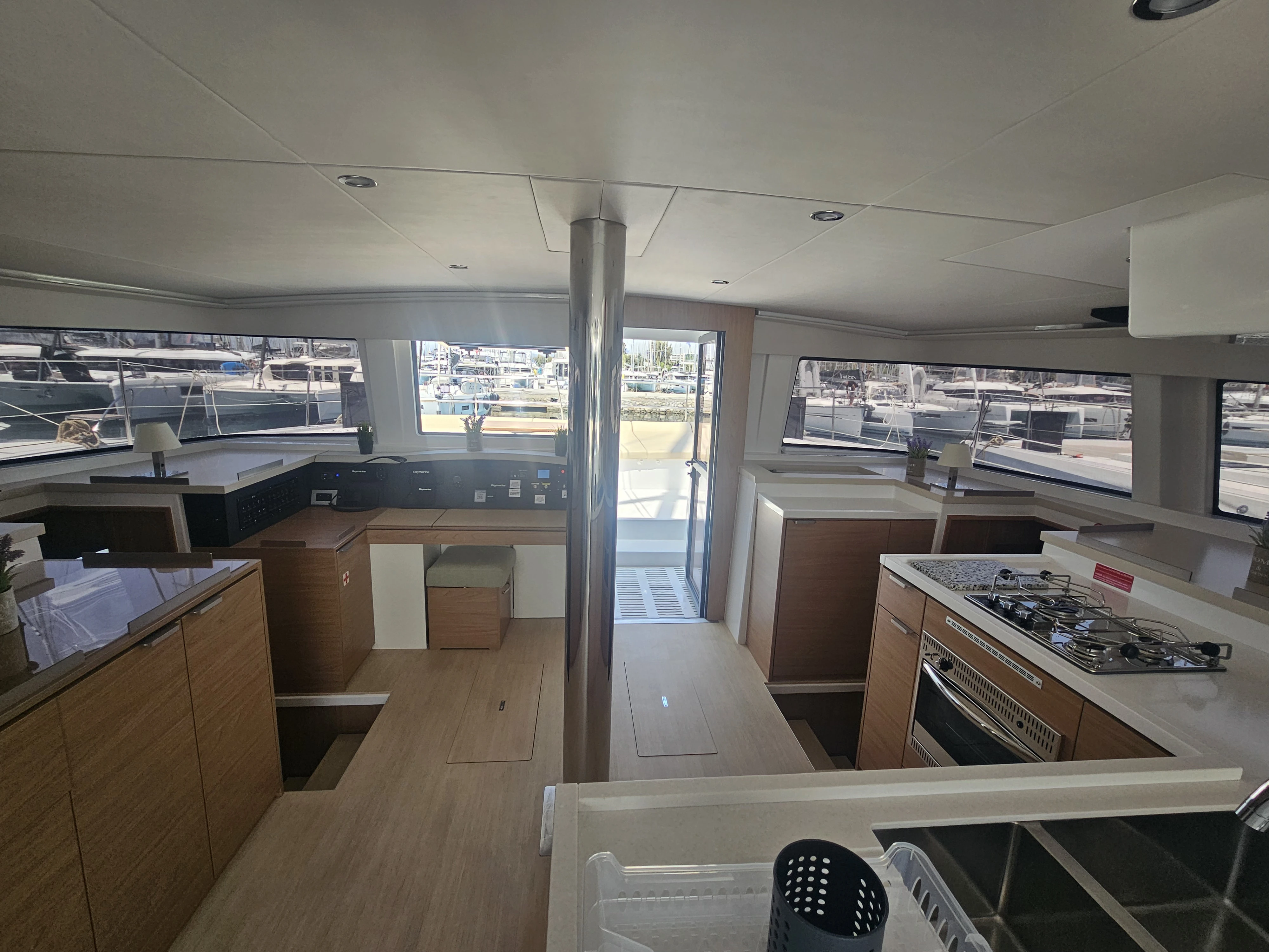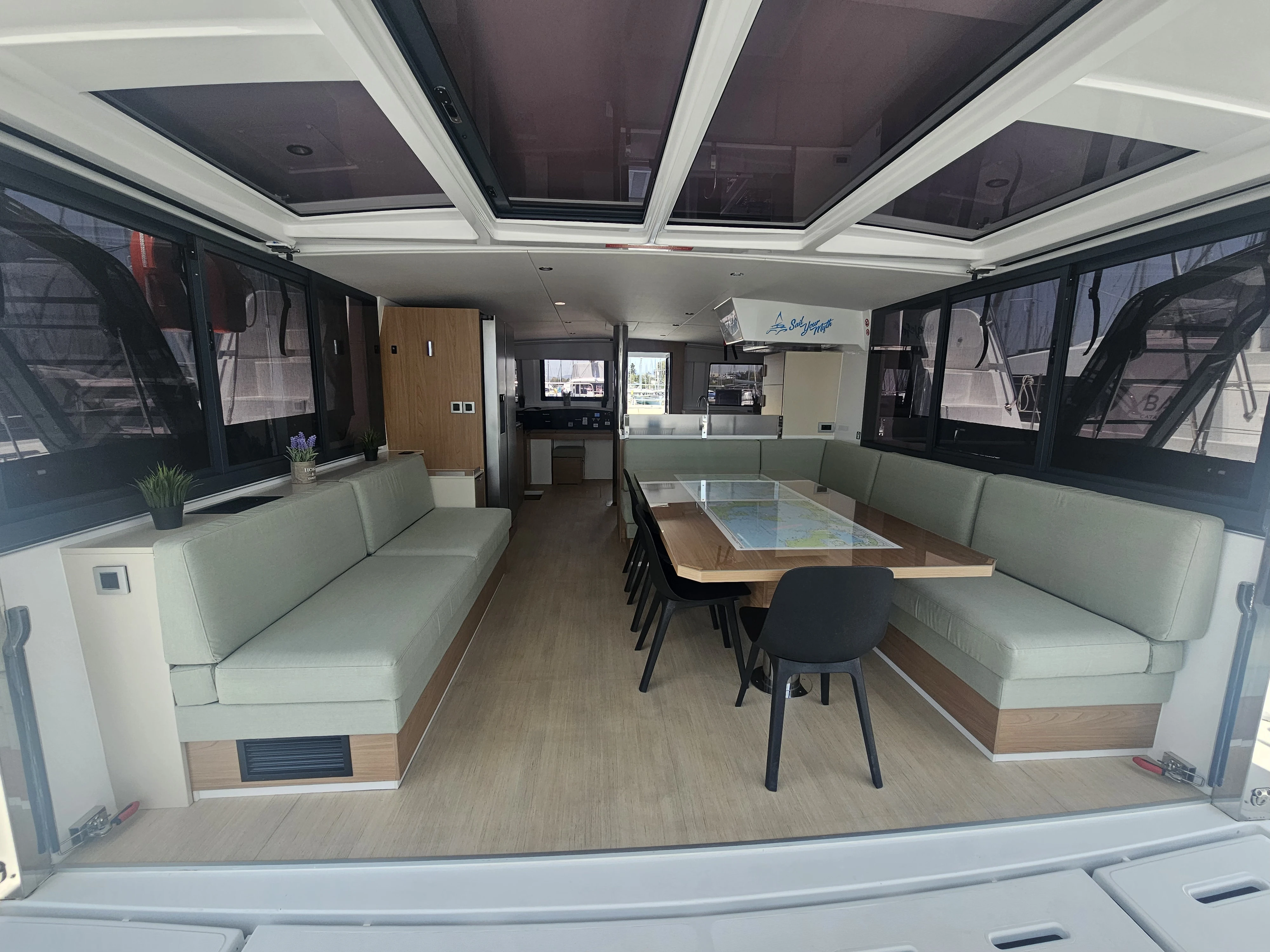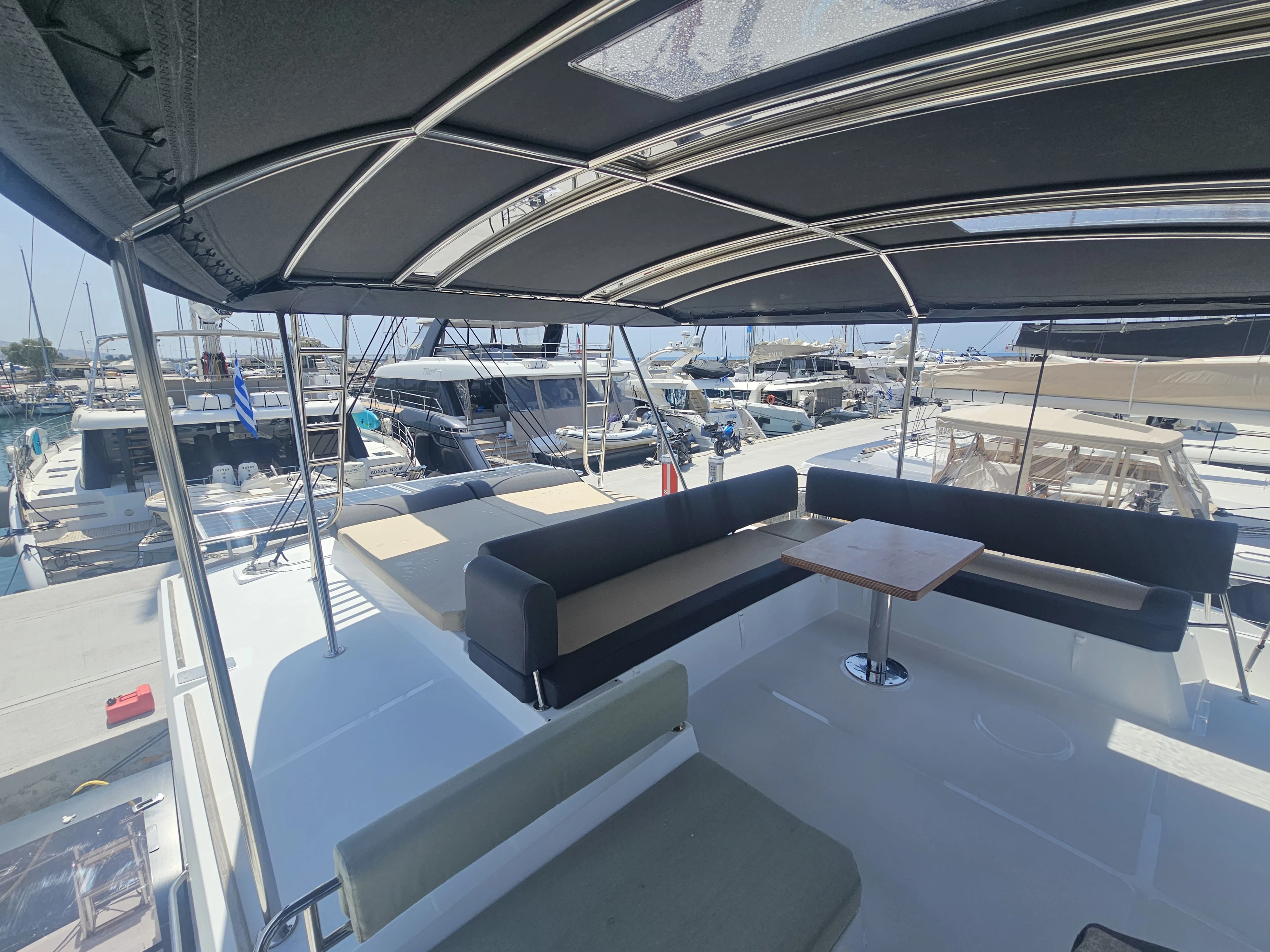 The BALI 4.8 embodies the art of French living. This 48-footer features all the assets of the BALI CATAMARANS range: her slender, straight bows creating elegant lines, her numerous storage spaces, her contemporary design, and of course, the “BALI door”. Whether under way or at anchor, you can go from the saloon to the forward cockpit in the blink of an eye through the watertight door. Whether revictualling or going ashore, a simple and practical davit system makes it very easy access the tender.