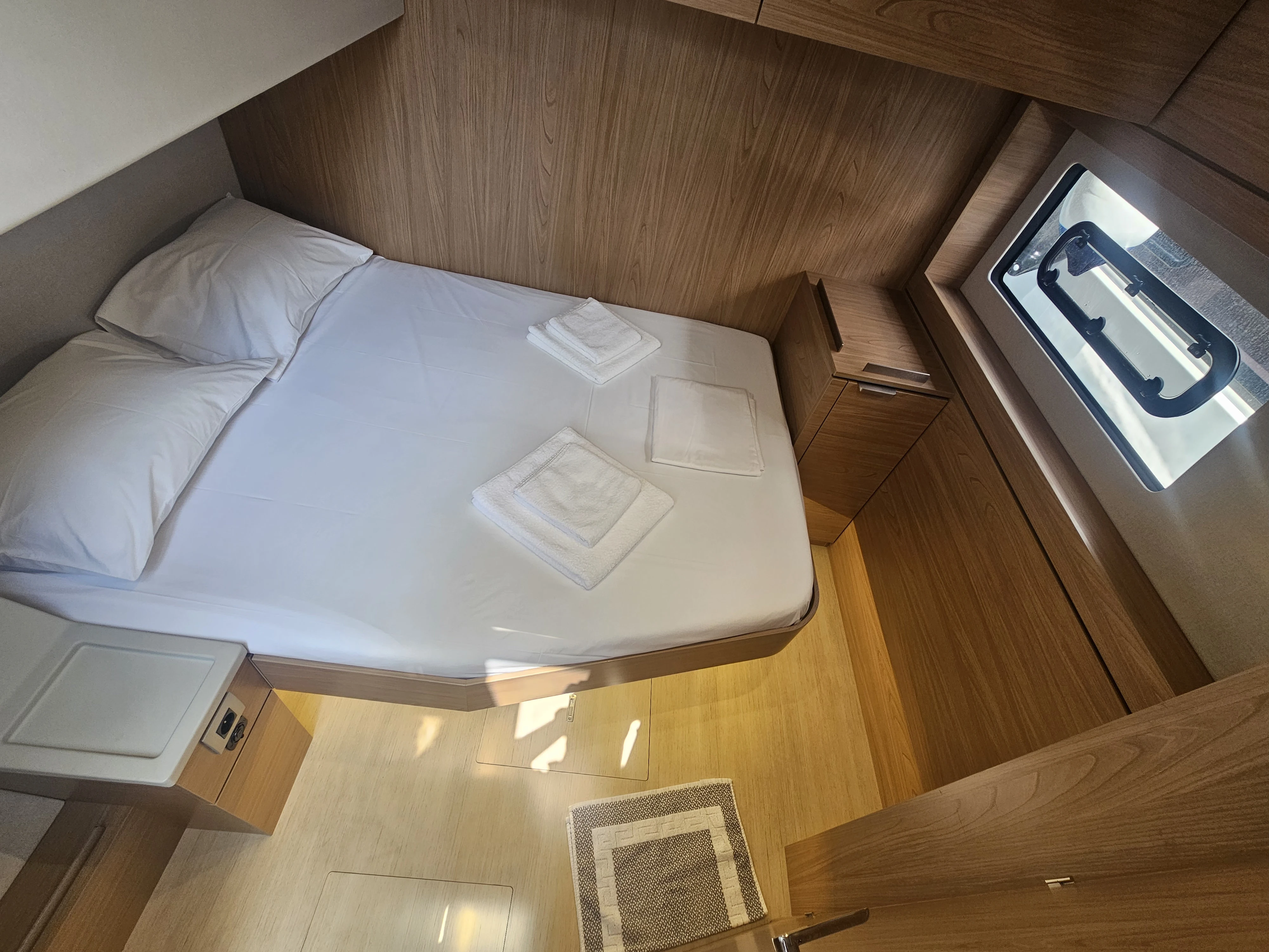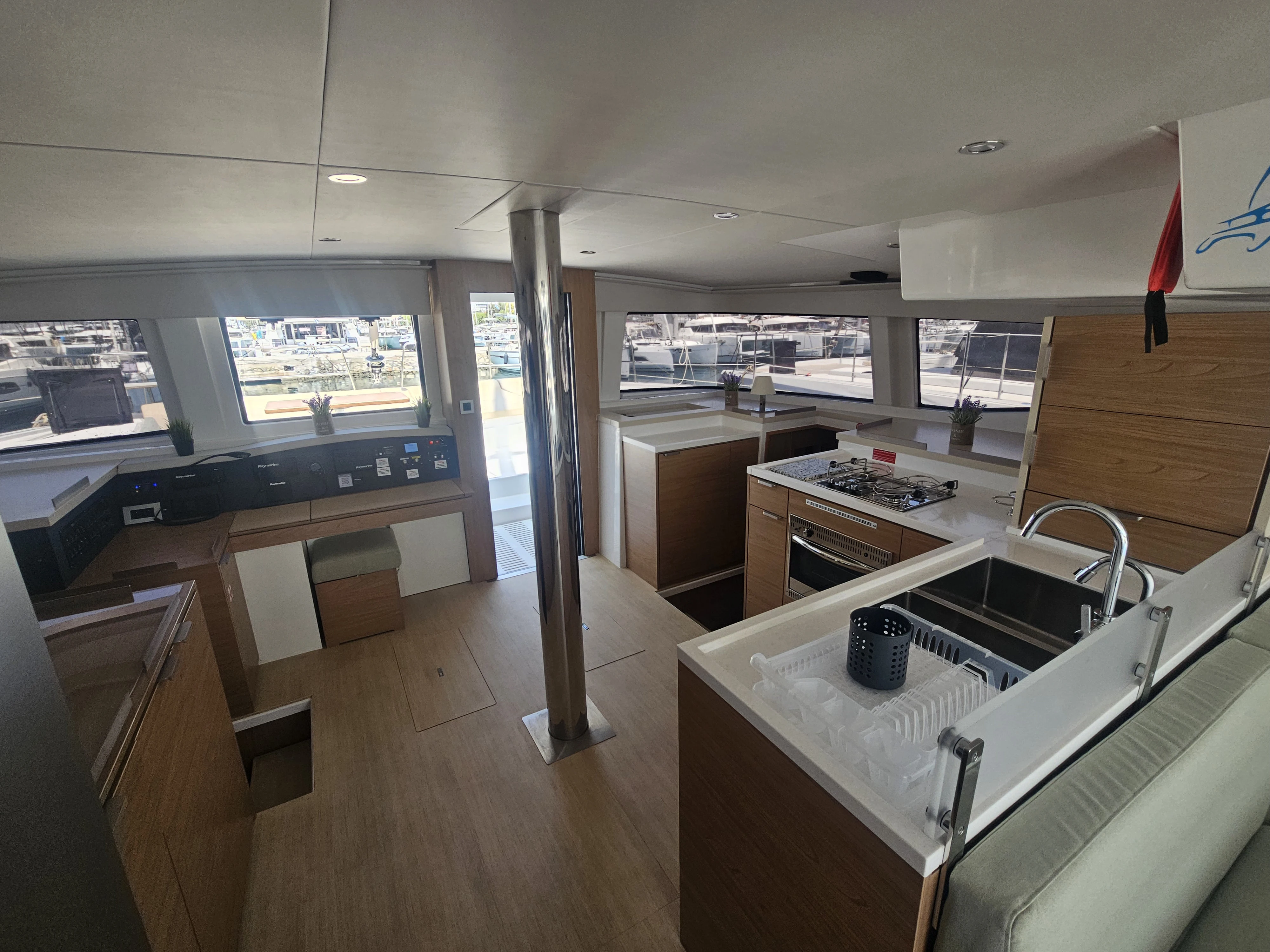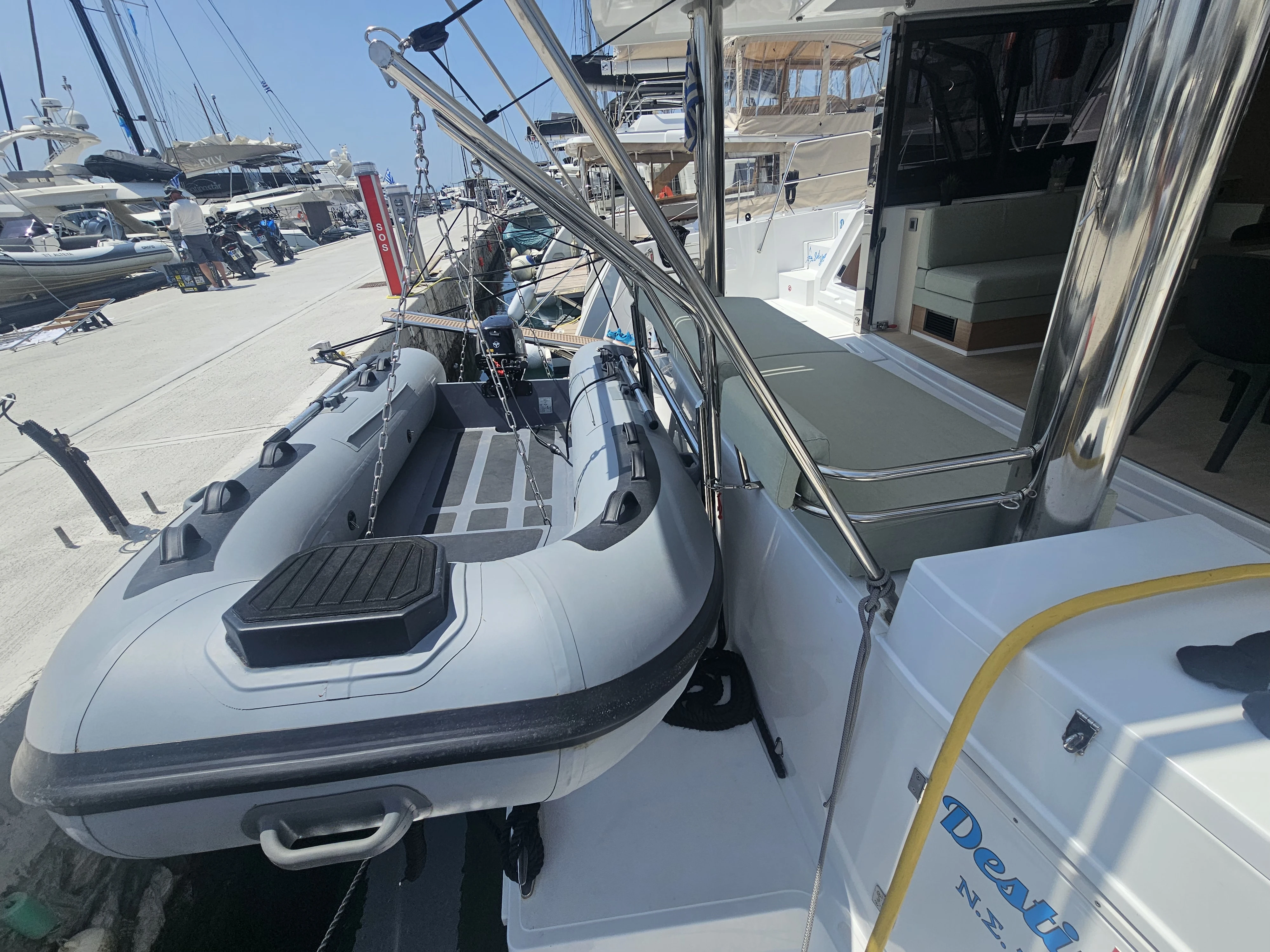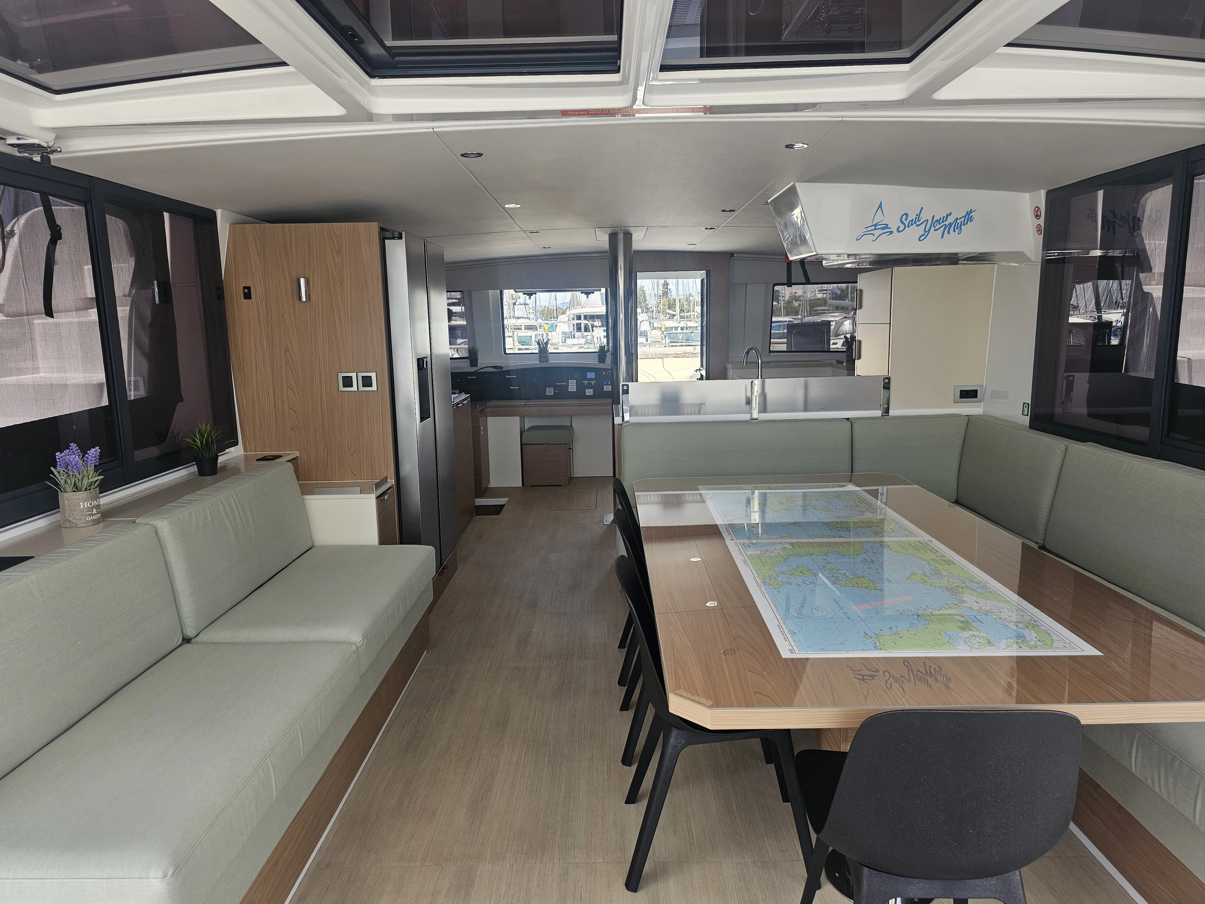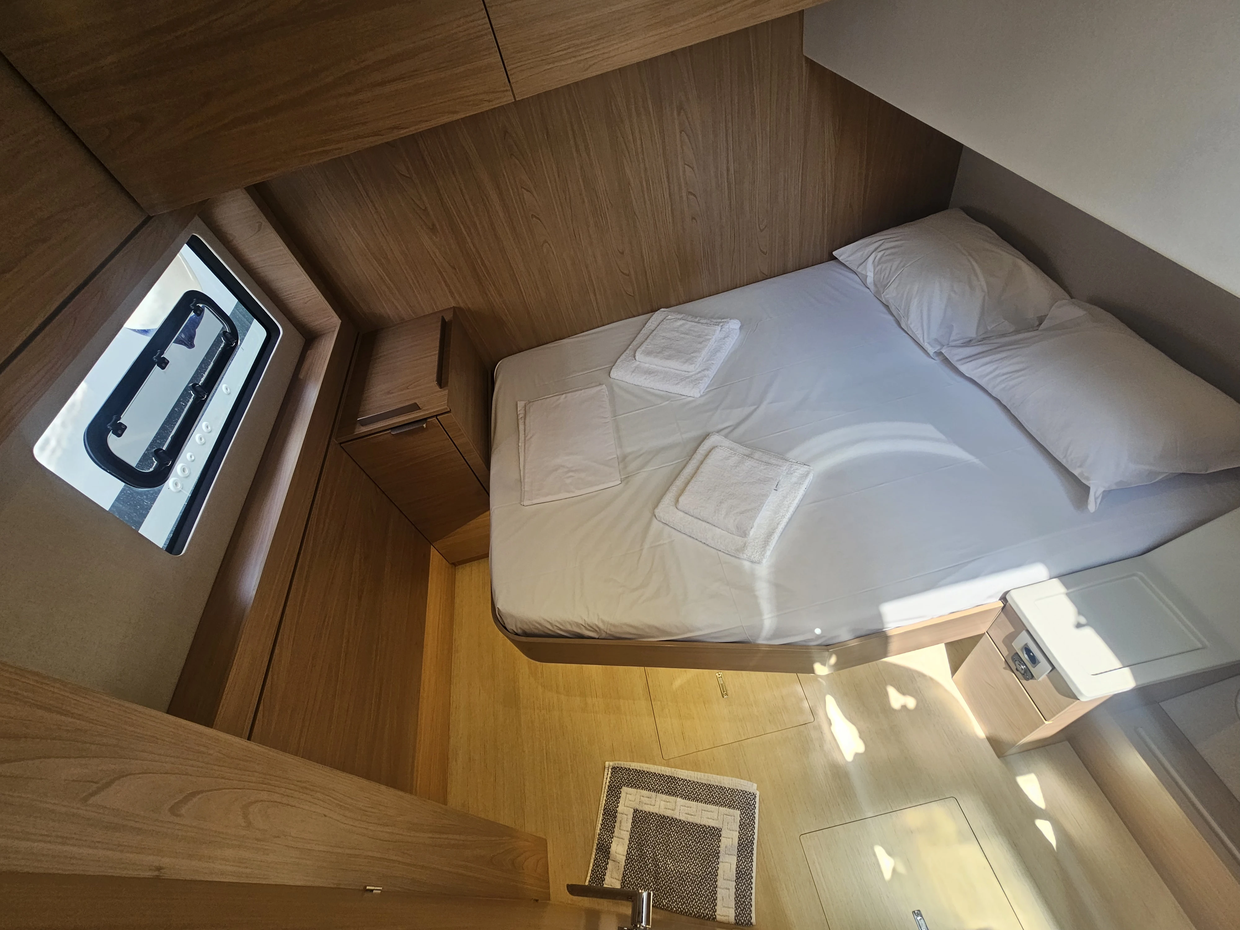 The BALI 4.8 embodies the art of French living. This 48-footer features all the assets of the BALI CATAMARANS range: her slender, straight bows creating elegant lines, her numerous storage spaces, her contemporary design, and of course, the “BALI door”. Whether under way or at anchor, you can go from the saloon to the forward cockpit in the blink of an eye through the watertight door. Whether revictualling or going ashore, a simple and practical davit system makes it very easy access the tender.