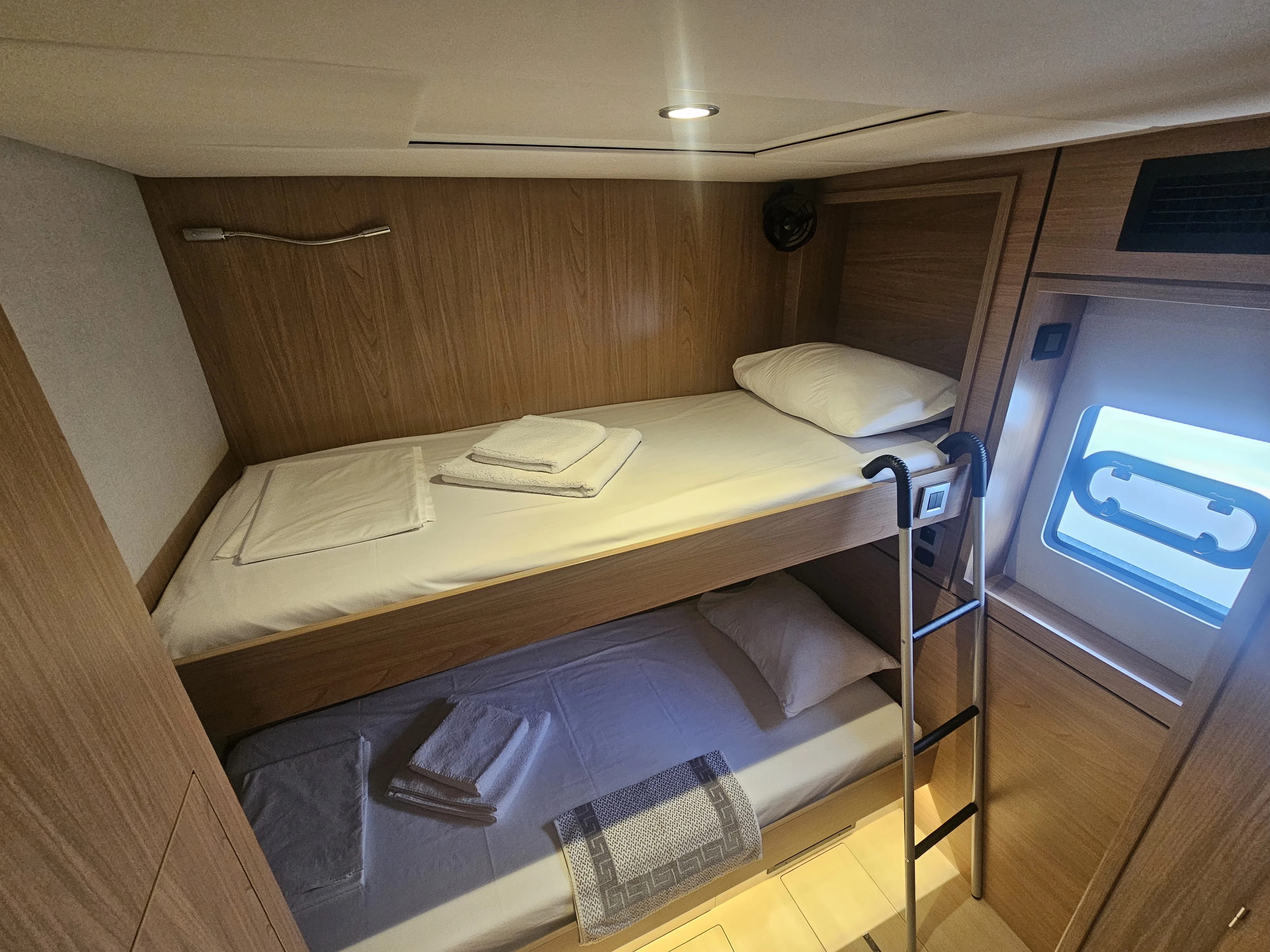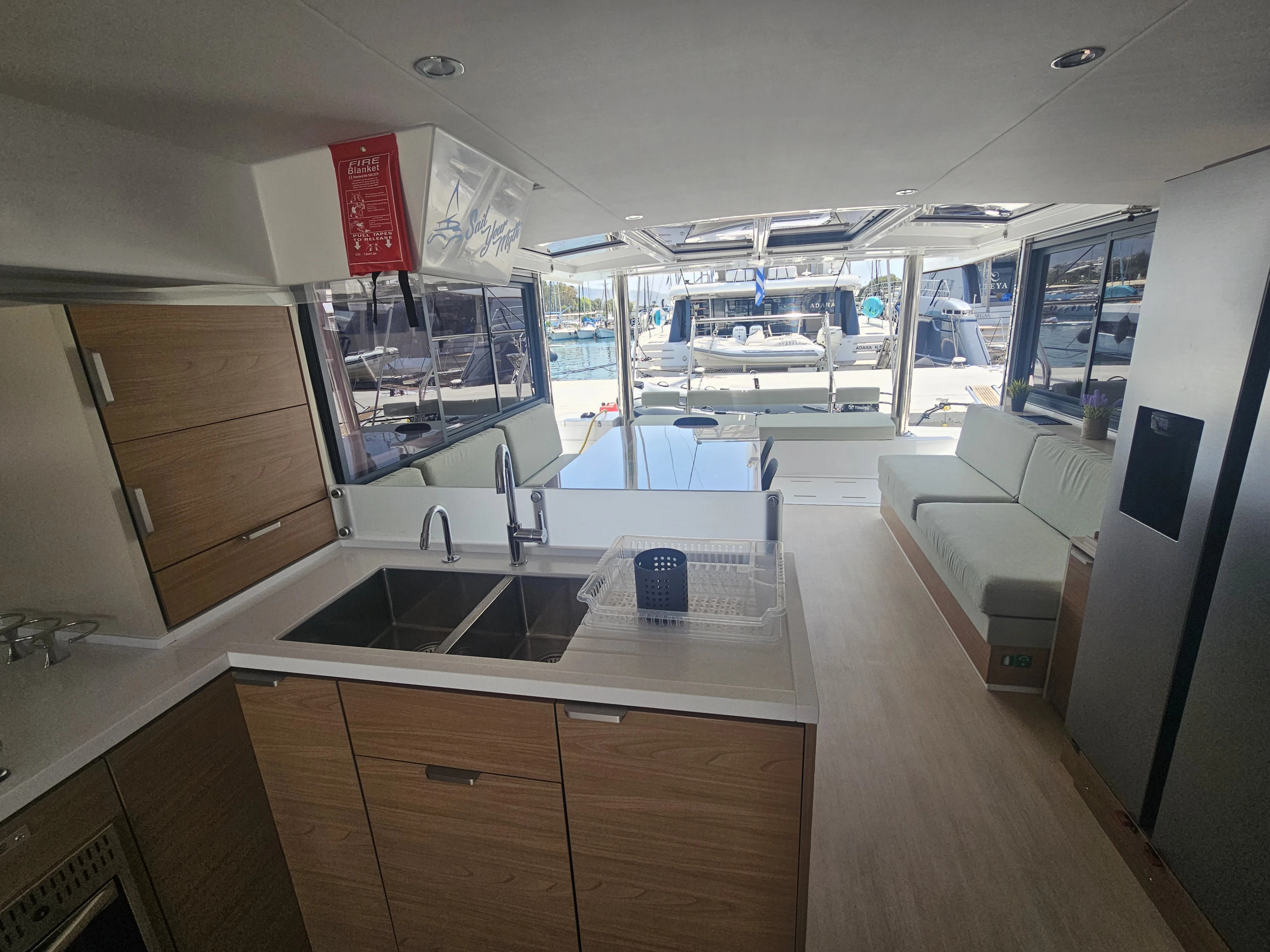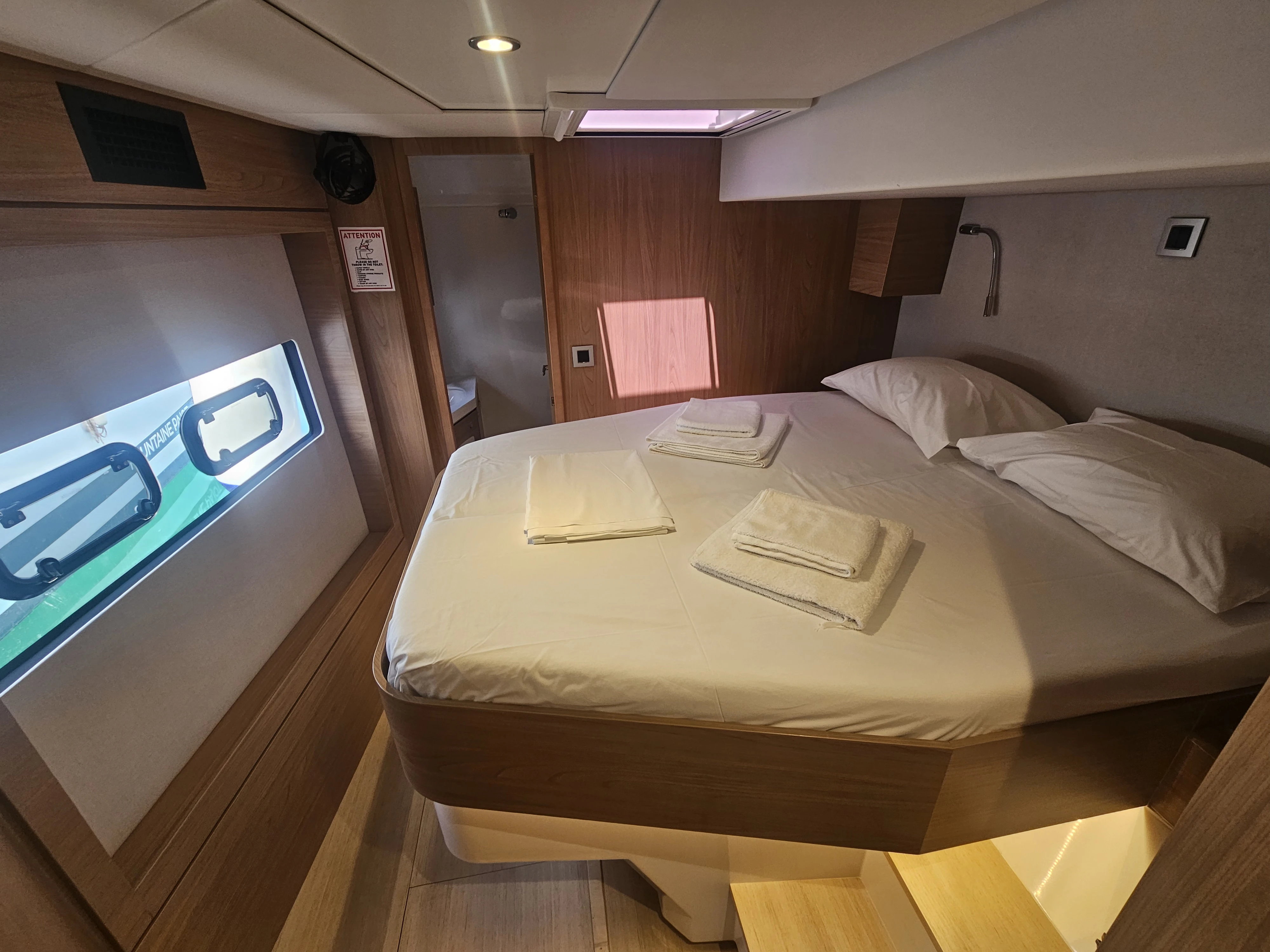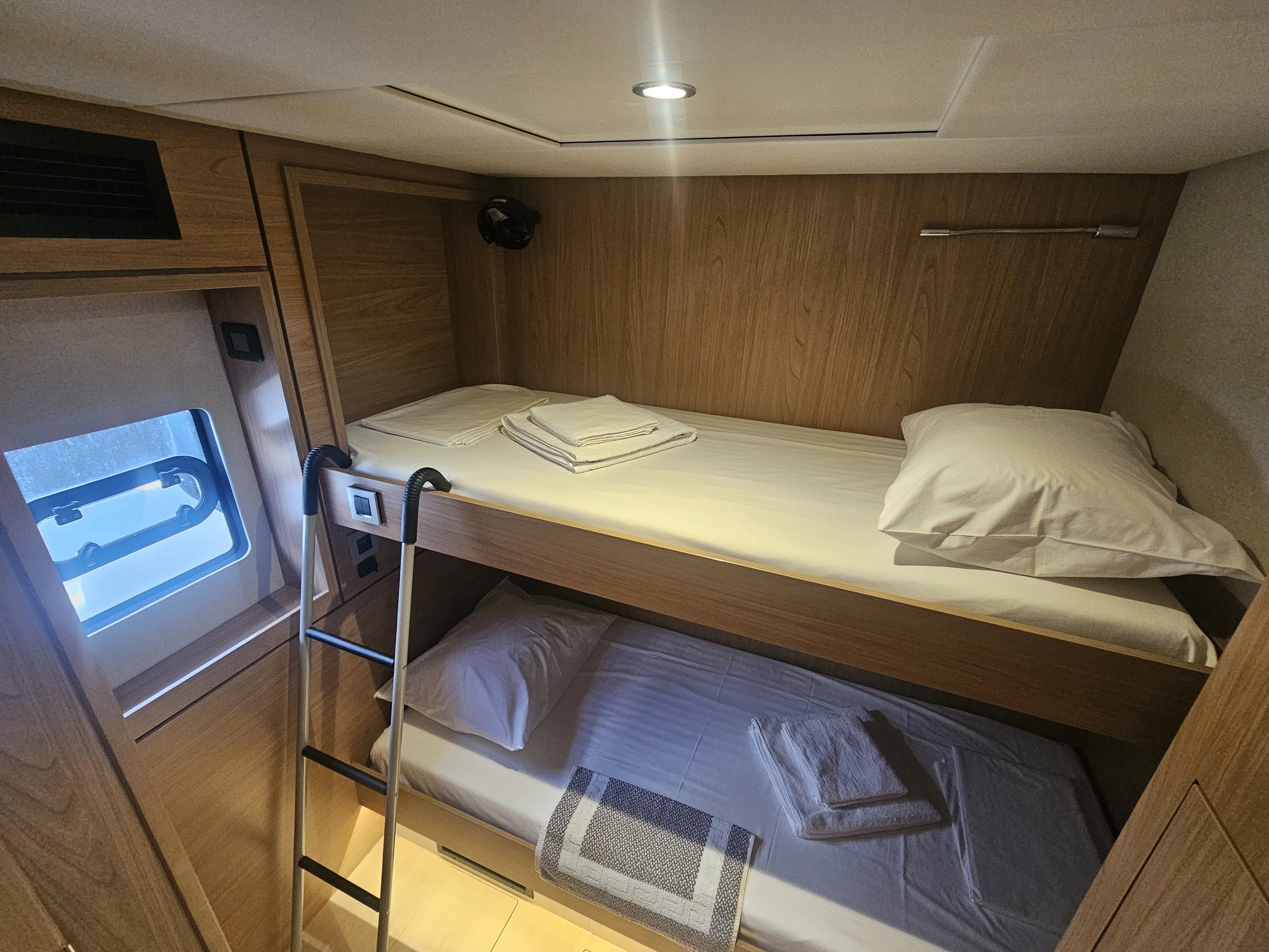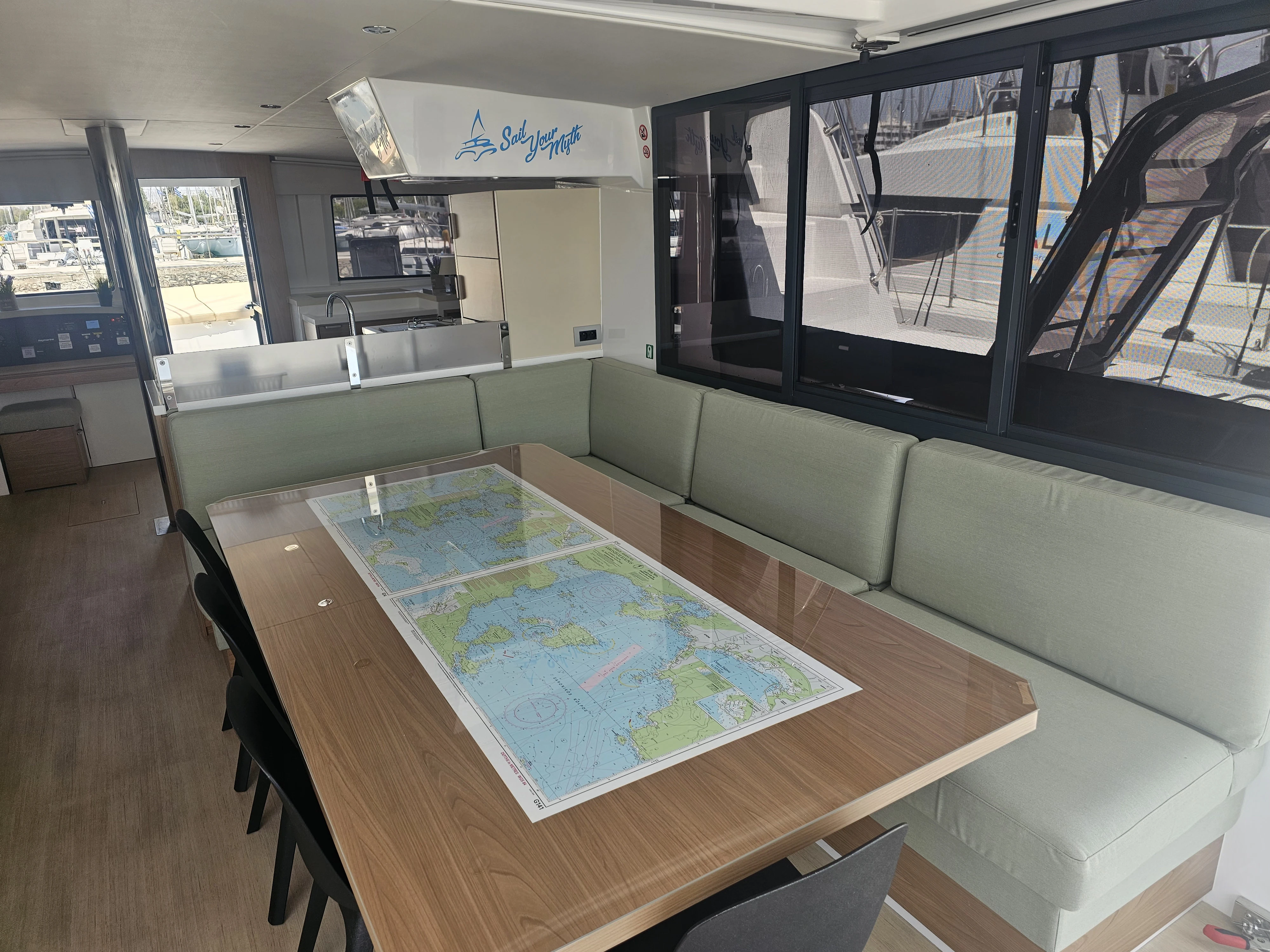 The BALI 4.8 embodies the art of French living. This 48-footer features all the assets of the BALI CATAMARANS range: her slender, straight bows creating elegant lines, her numerous storage spaces, her contemporary design, and of course, the “BALI door”. Whether under way or at anchor, you can go from the saloon to the forward cockpit in the blink of an eye through the watertight door. Whether revictualling or going ashore, a simple and practical davit system makes it very easy access the tender.