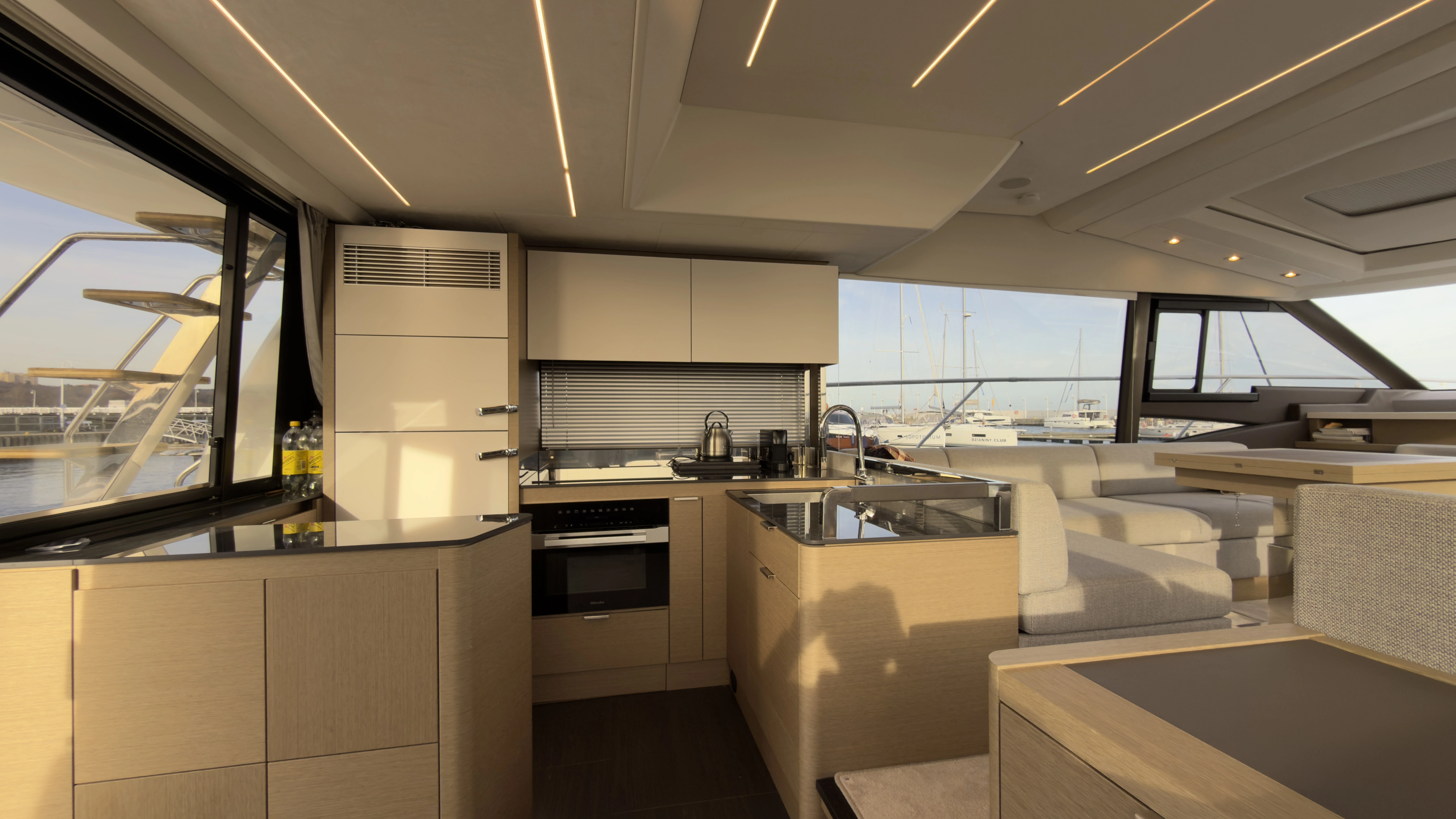 Equipped with radar, a power generator, an interior chart plotter in the saloon, and a bow thruster. Your journey will be enhanced by a flat-screen TV, air conditioning, an audio system, outdoor speakers, and a spacious flybridge. The fully equipped galley includes a coffee machine, refrigerator, cooker, sink, and complete kitchen utensils.