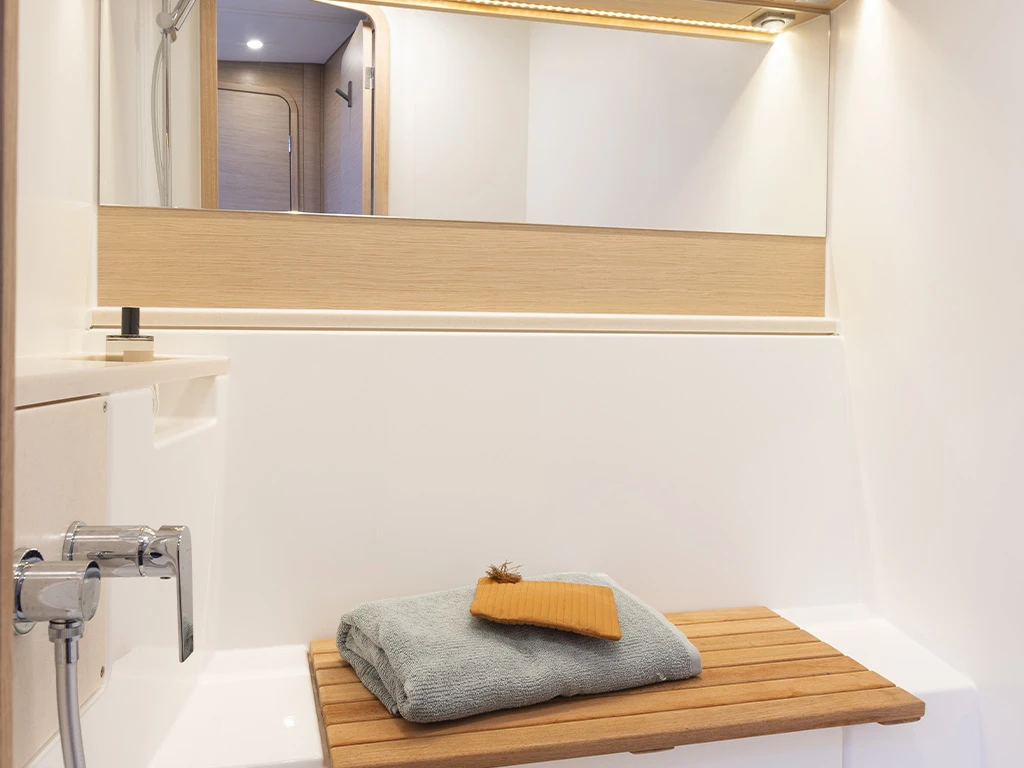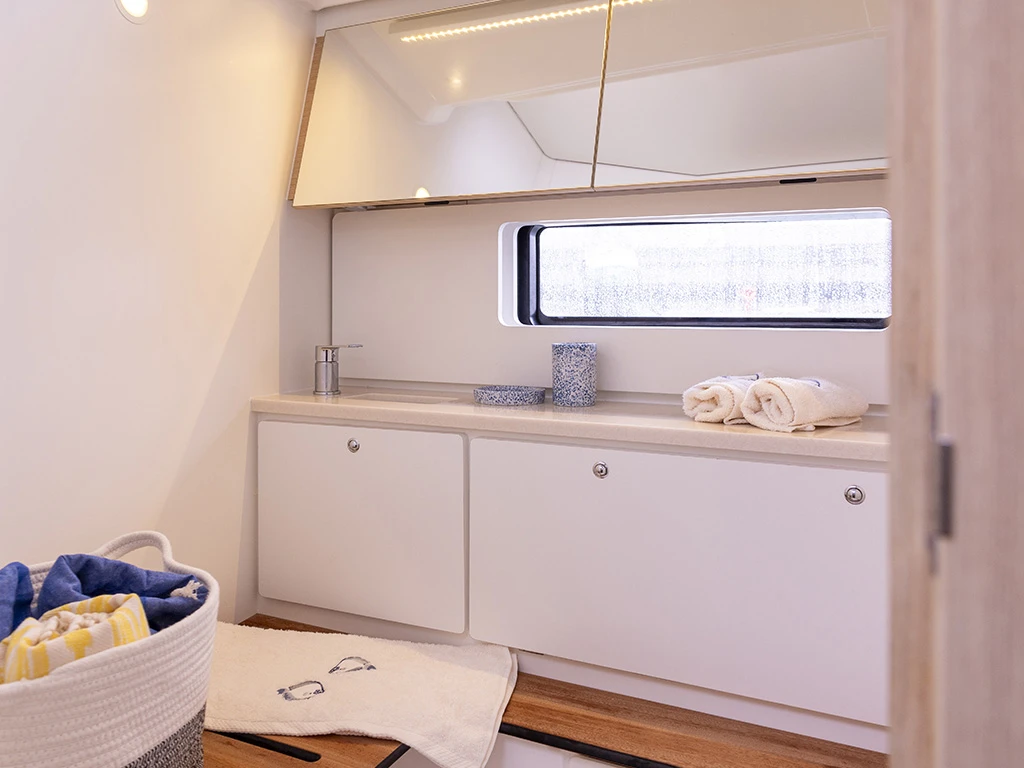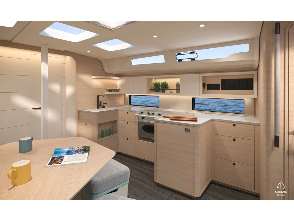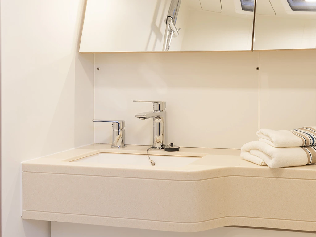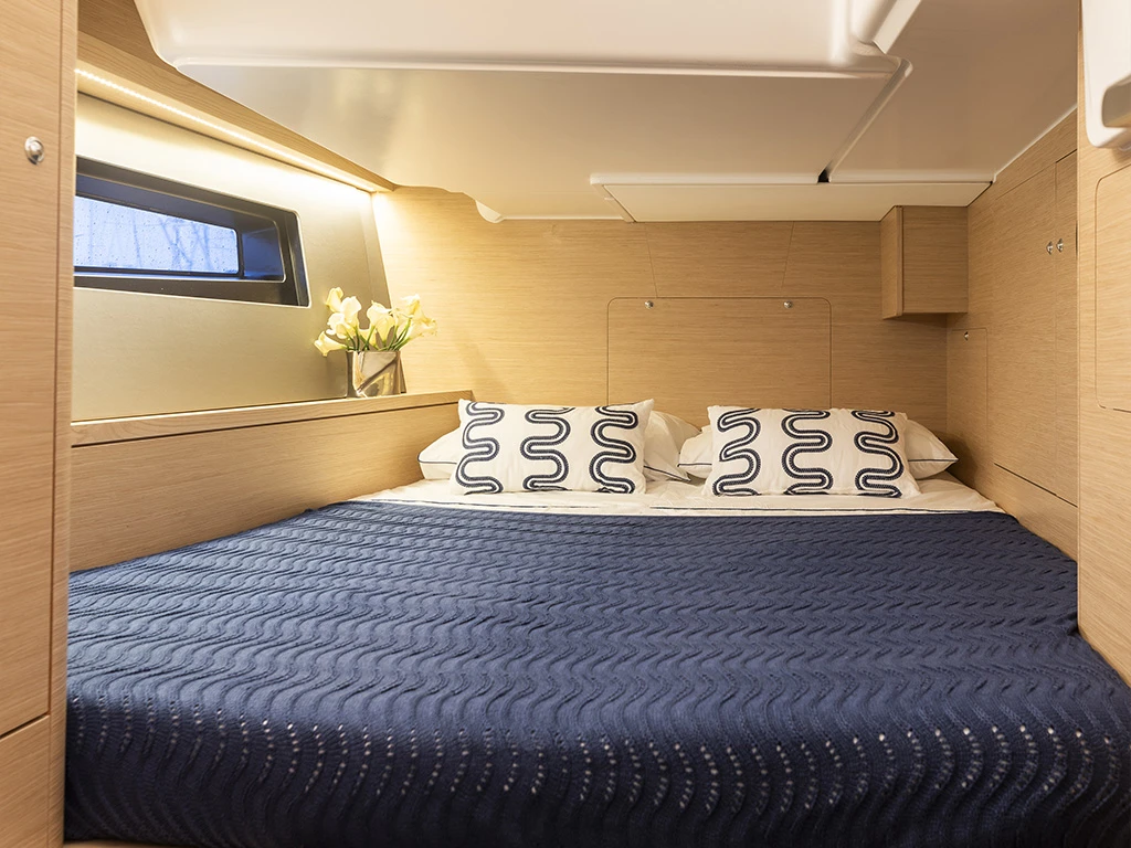 This yacht is the perfect choice for your next sailing holiday with elegant design, luxurious interior and impressive performance. The new Dufour 44 has four double cabins, three bathrooms and a separate shower and can accommodate up to 10 charter guests. The saloon is spacious and the saloon table can be converted into a sunbathing area, as well as housing the fully equipped galley. The modern design and high-quality materials create a luxurious ambience. You will immediately feel at home here.