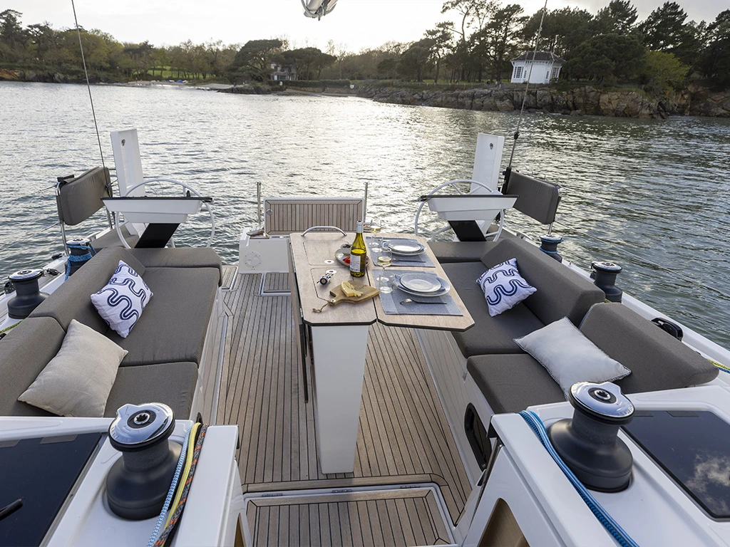 Enjoy the breathtaking view of the turquoise waters and the picturesque coastline of Mallorca while dining together in the cockpit dining area or relaxing on the sun loungers on deck.