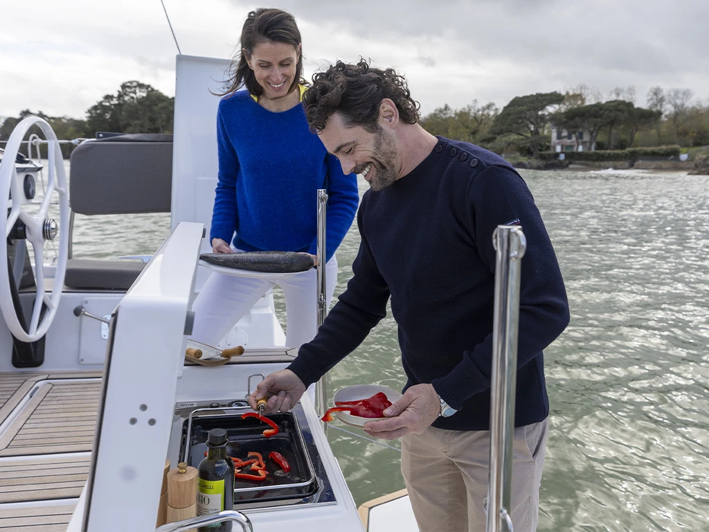 The Dufour 44 is equipped with state-of-the-art technology for an unforgettable experience on the water. Thanks to the powerful 60 hp engine and precise steering, you can glide easily through the waves. Thanks to the solar panels and water maker, you are largely independent of harbours.