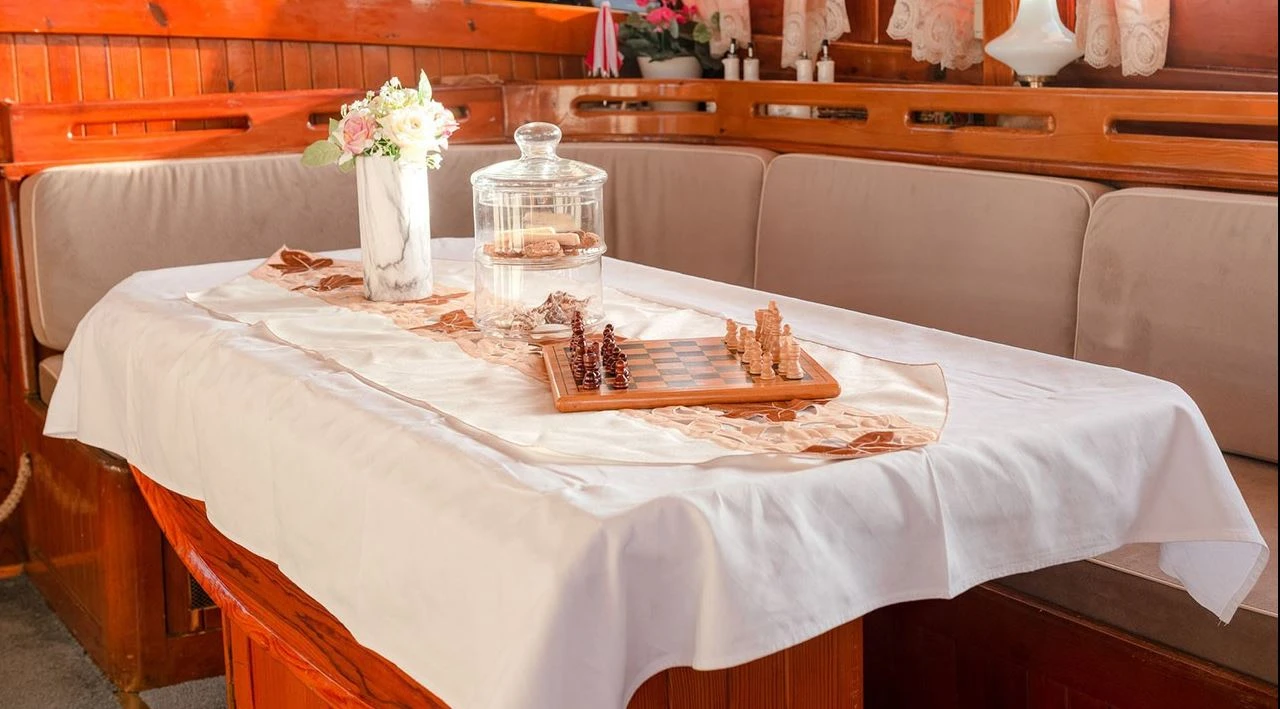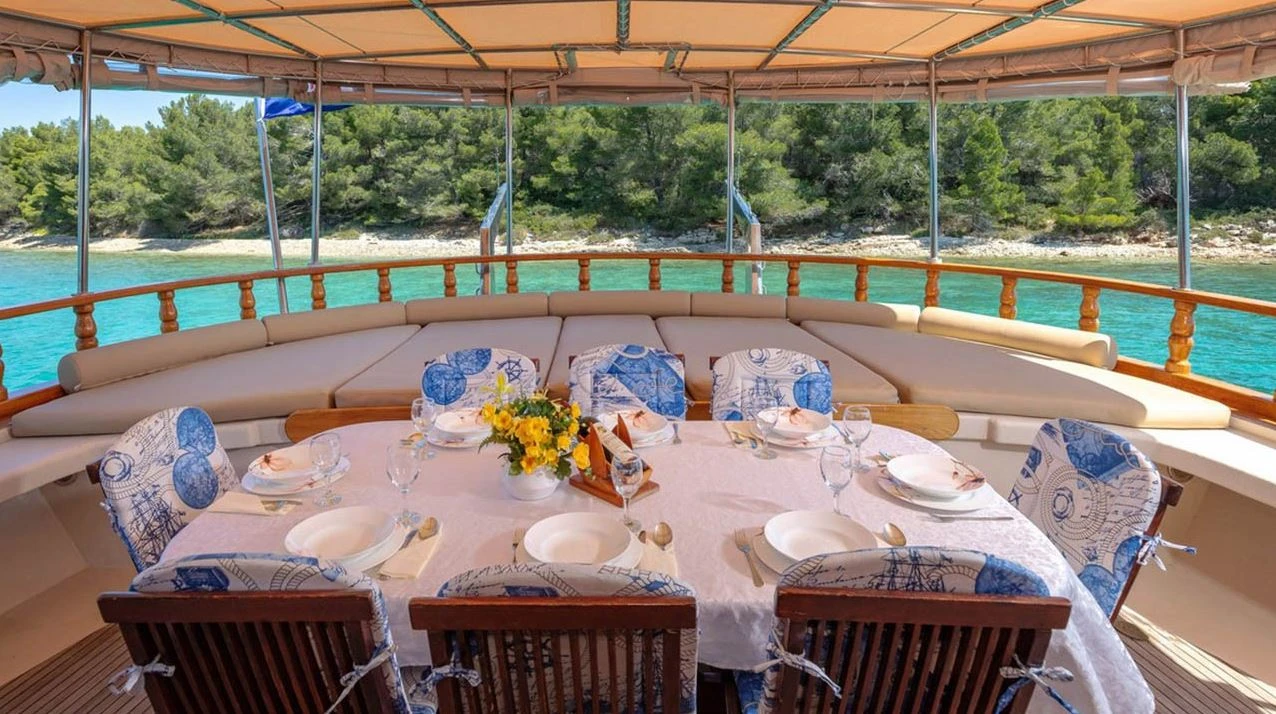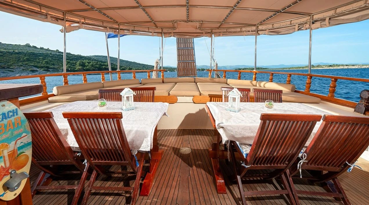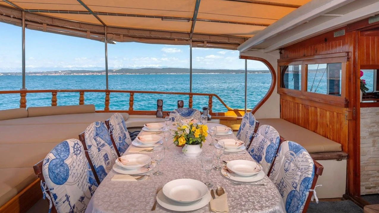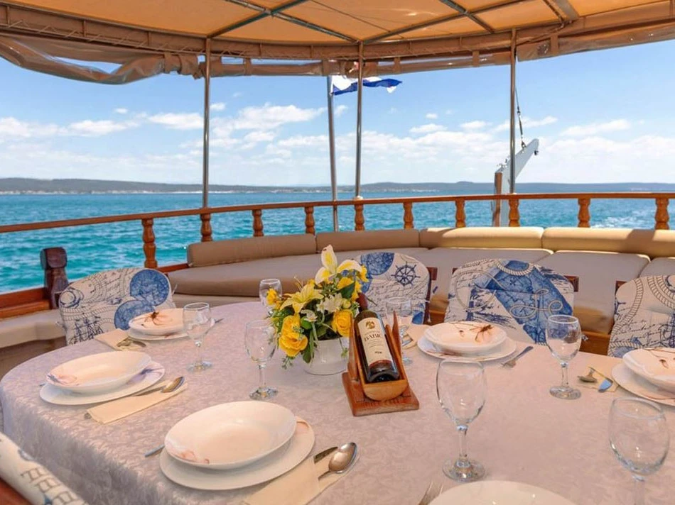 3 crew members: Captain, Chef/ hostess and Deckhand